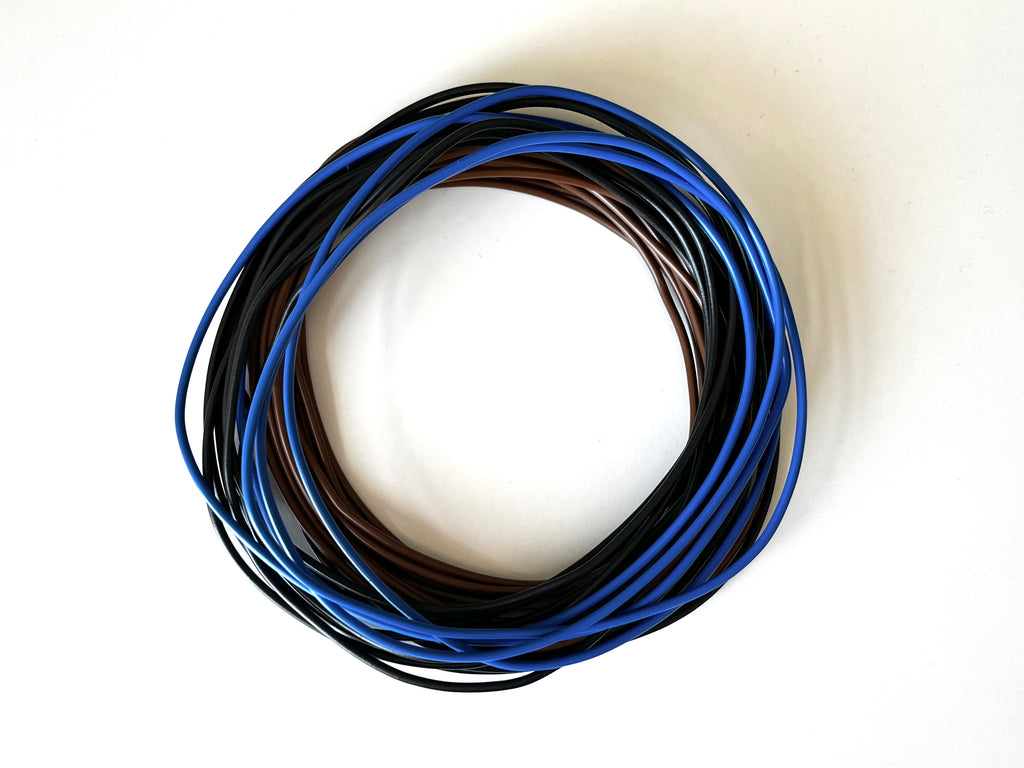 Set of all 3 colours of our 25 amp thinwall cables, sold by the metre. Just select how many metres of each colour you need and we will send you that length of each of the following colours: blue, black, and brown.